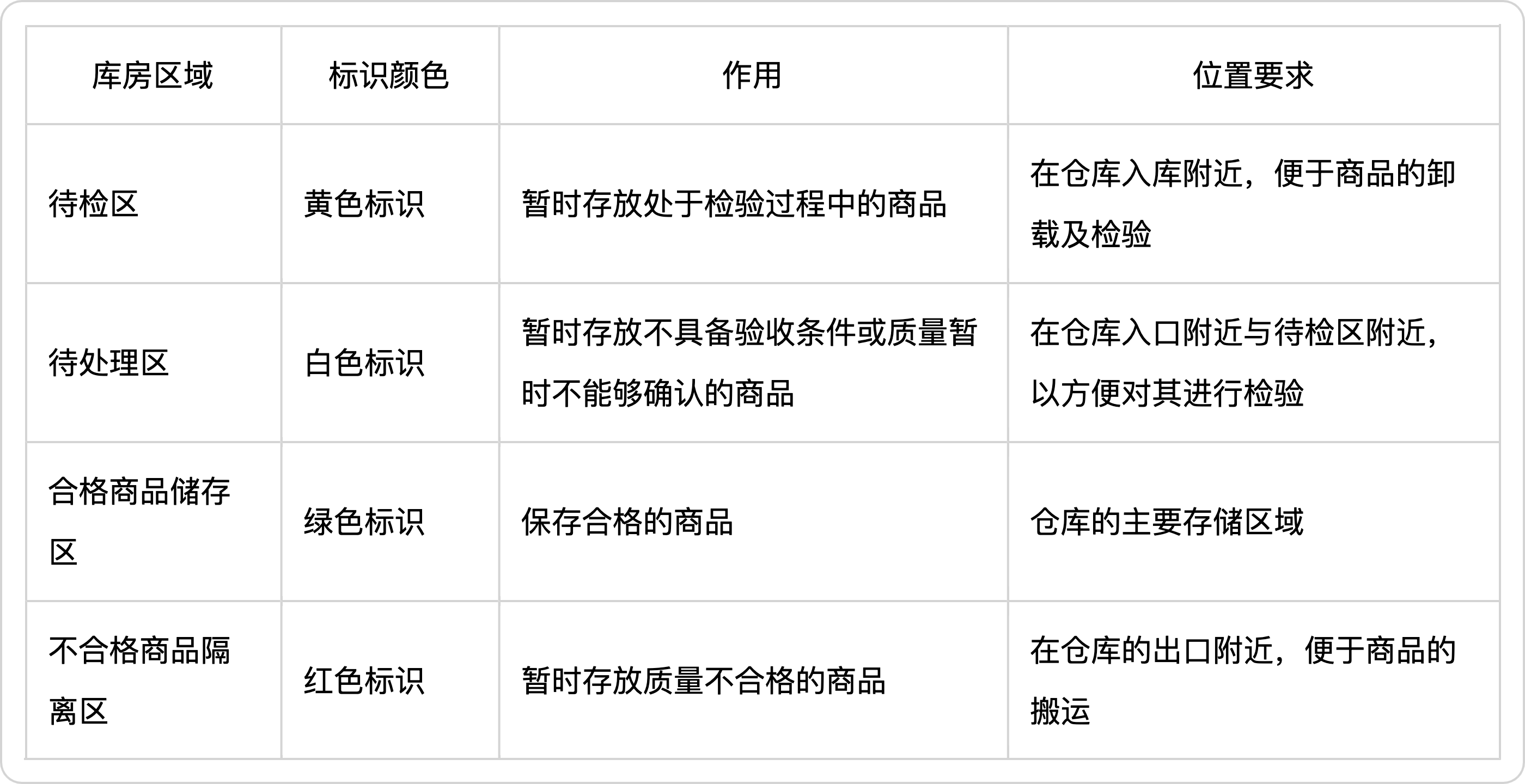 主要用于存放刚刚入库、尚未进行质量检验的商品,确保这些商品在未确定质量状况前不会流入下一环节;