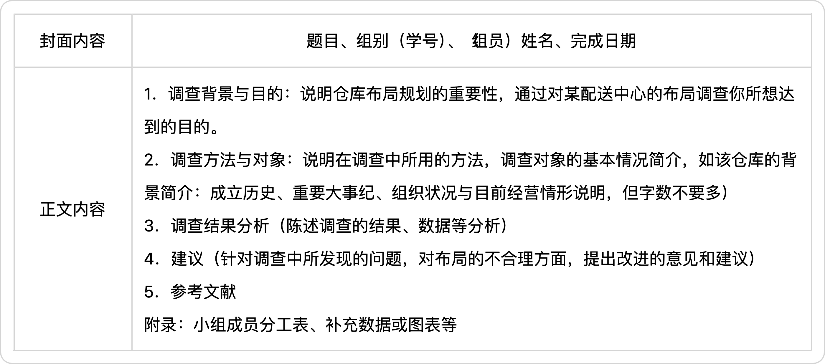 4.按照实践调研报告格式完成小组仓储规划布局调研报告。
